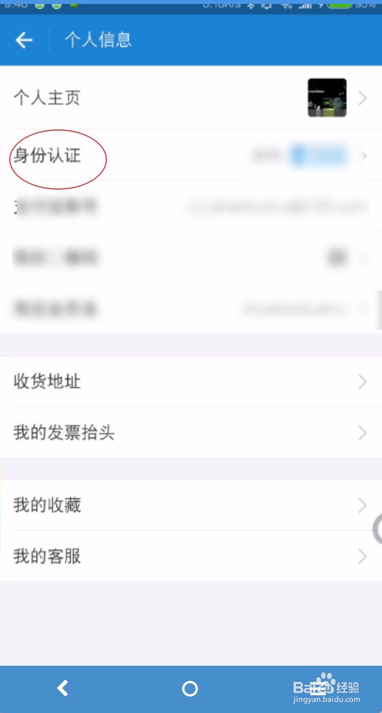 2、在下图里面选择身份认证,看到未完善的点击一下。